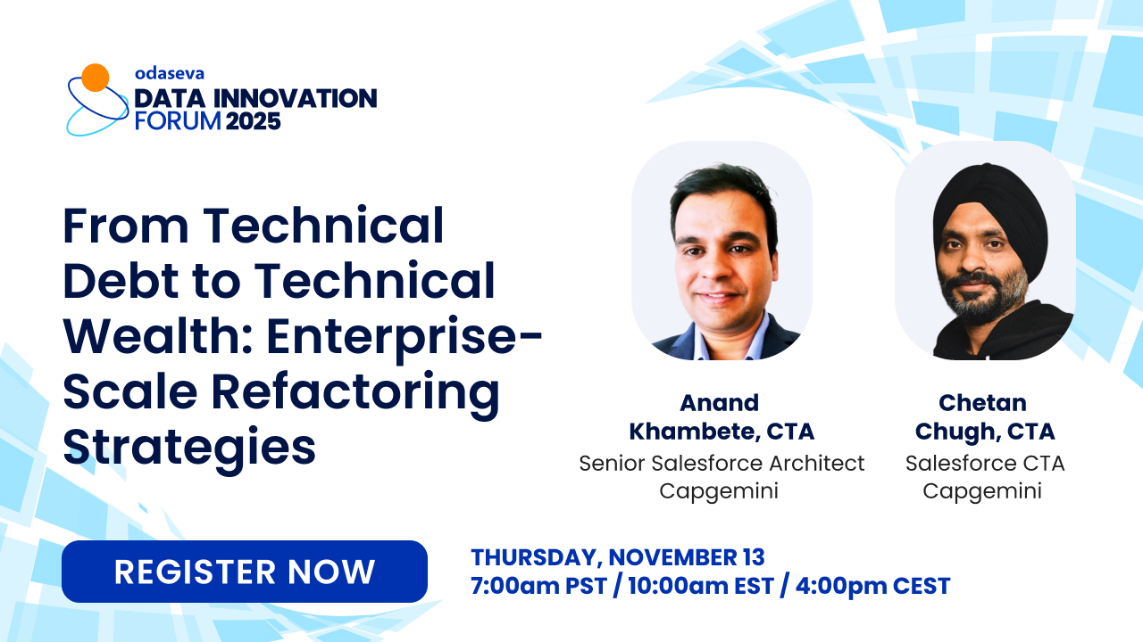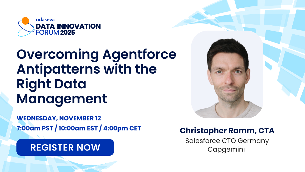 The 2025 Odaseva Data Innovation Forum brought together Salesforce Architects, data experts, and enterprise leaders to explore groundbreaking strategies to harness the full power of Salesforce data. From AI-driven data architecture to advanced security, compliance, and performance optimization, each session delivered practical guidance for navigating today’s rapidly evolving Salesforce data landscape.