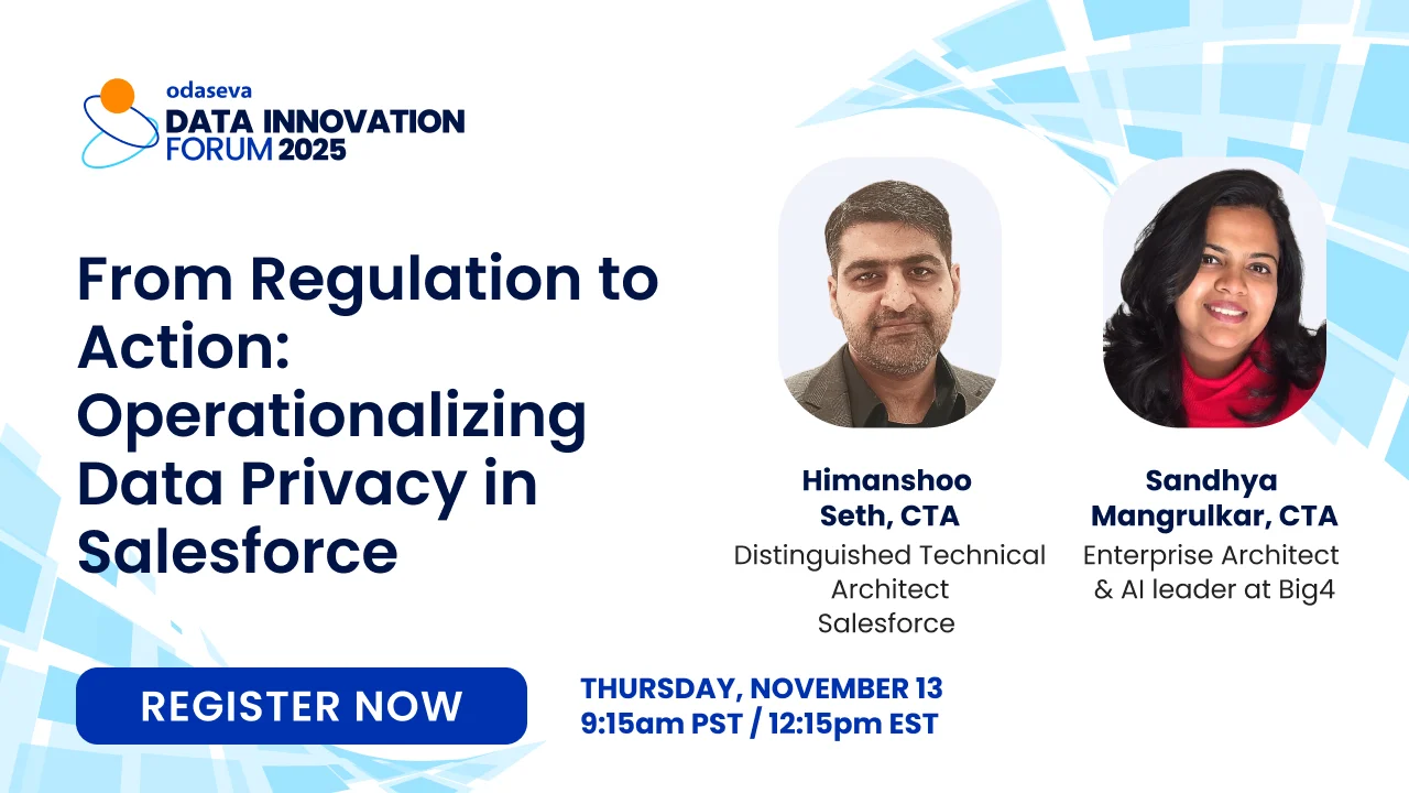 This session showed what was beyond regulatory checklists and into the practical realities of implementing robust data privacy controls in Salesforce, while leveraging the power of AI responsibly. Our speakers helped demystify the journey from legal mandates to day-to-day operations, sharing real-world strategies, use cases, and actionable insights to empower teams to safeguard customer data and unlock new opportunities for growth.