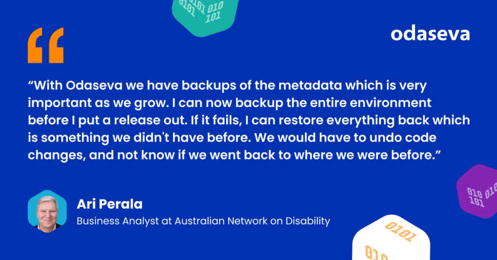 Ari Perala, Business Analyst at AND, set out to identify backup and restore solutions capable of meeting the organization’s timeframe, requirements, and budget. He considered Odaseva, as well as generic backup and restore providers.