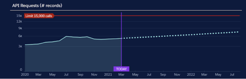 While Salesforce shows you the amount of resources that you are currently using, it doesn’t show you the usage history or predict how much your Org will use in the future.