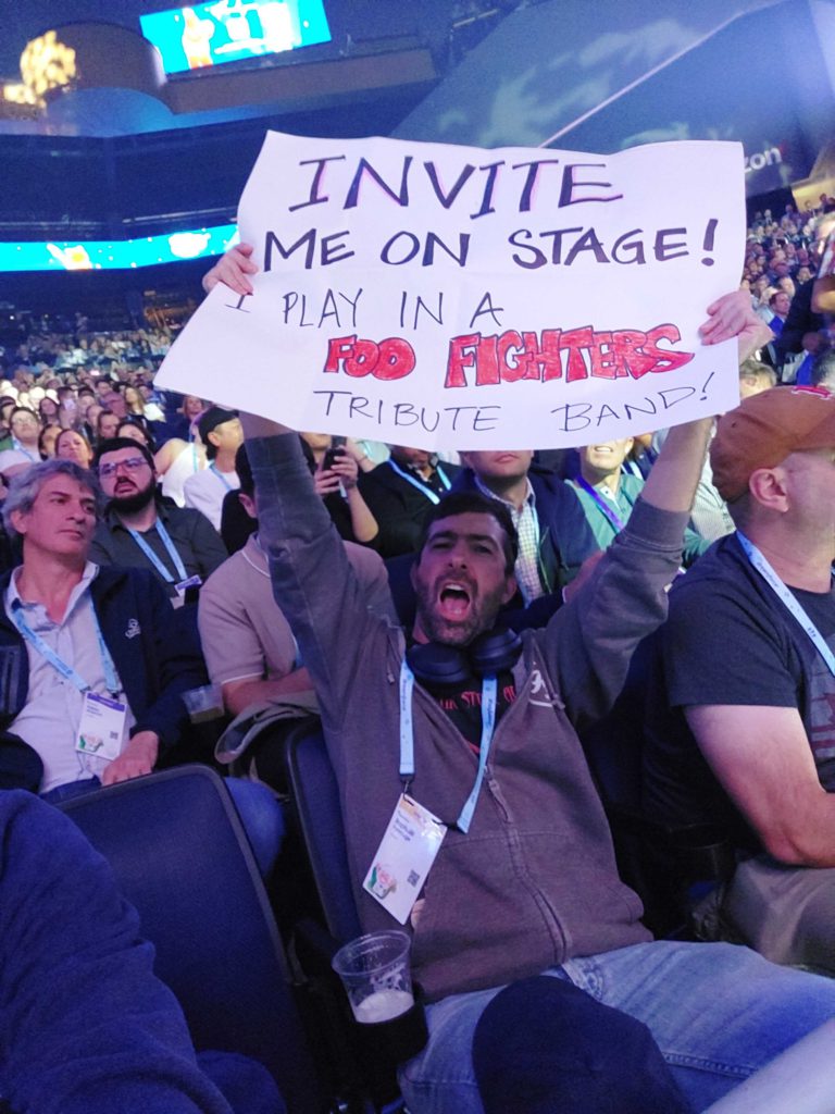 Odaseva’s VP of Engineering on stage with the Foo Fighters at Dreamfest